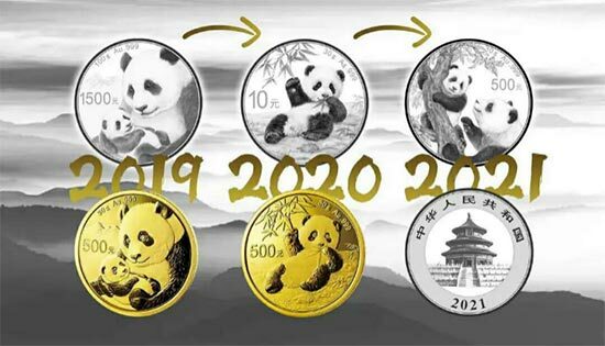2019版熊貓金銀紀念幣開始,熊貓金銀紀念幣的設計開啟了以十年為一個大故事的設計模式。2019版熊貓金銀紀念幣的圖案是一對母子熊貓,“愛的新生”的幣面主題標誌著新系列故事的開始。2020版熊貓金銀紀念幣的圖案是2019版故事的延續,它刻畫的是一隻從幼崽成長為“兒童”的熊貓。活潑可愛的幼兒熊貓躺在斜坡上邊吃邊玩,展現了人與自然和諧相處的美好意境。2021版熊貓金銀紀念幣上的熊貓寶寶又長大了,他的四肢變得更強壯有力,活動範圍日趨擴大,媽媽開始引領著她的孩子學習爬樹。這只“少年熊貓”在媽媽的鼓勵下勇敢地向樹上攀登,最終將廣闊的青山綠水盡收眼底。