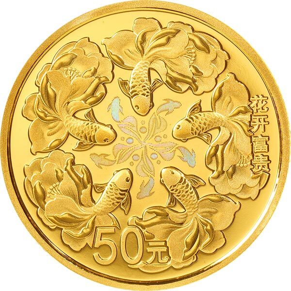 | 背面圖案 | 魚、牡丹裝飾組合圖案,並刊「花開富貴」字樣及面額。 | ||||||