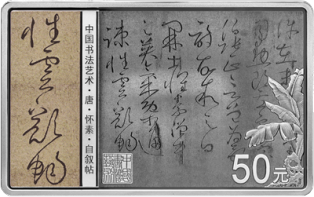 中國書法藝術(草書)150克長方形銀質紀念幣