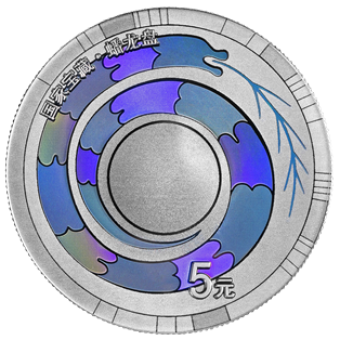 蟠龍盤造型,並刊“國家寶藏•蟠龍盤”字樣及面額。