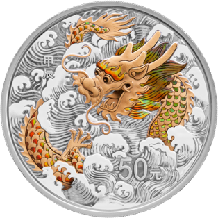 龍造型,襯以水紋組合設計,並刊「甲辰」字樣及面額。