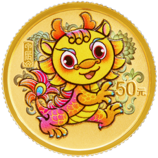 裝飾龍造型,襯以吉祥紋飾,並刊「甲辰」字樣及面額。