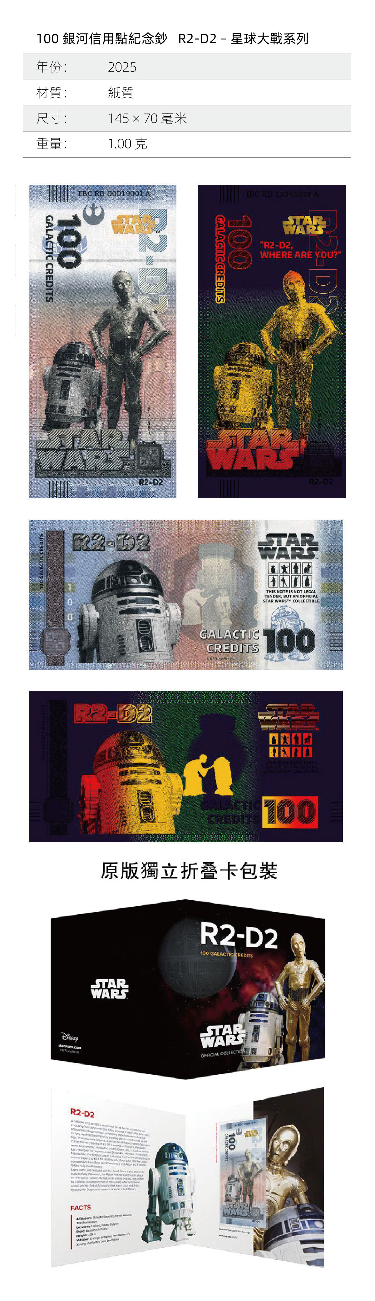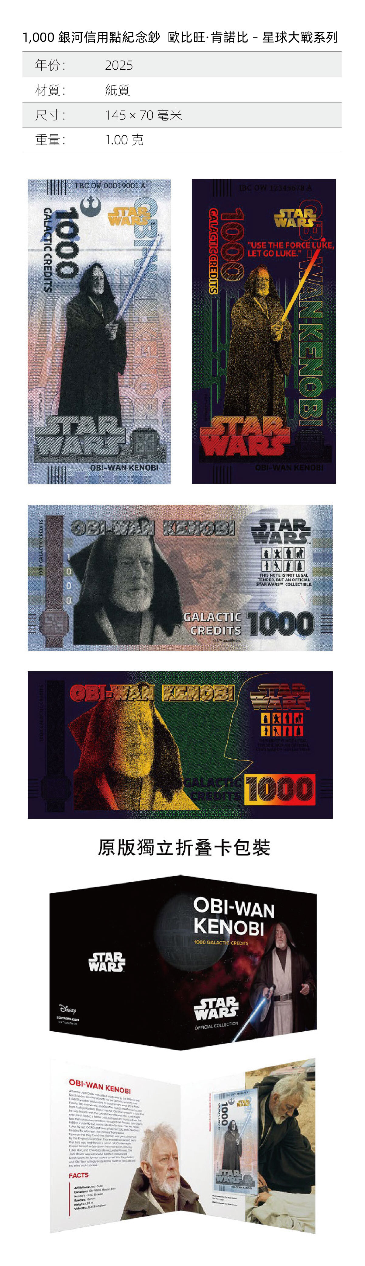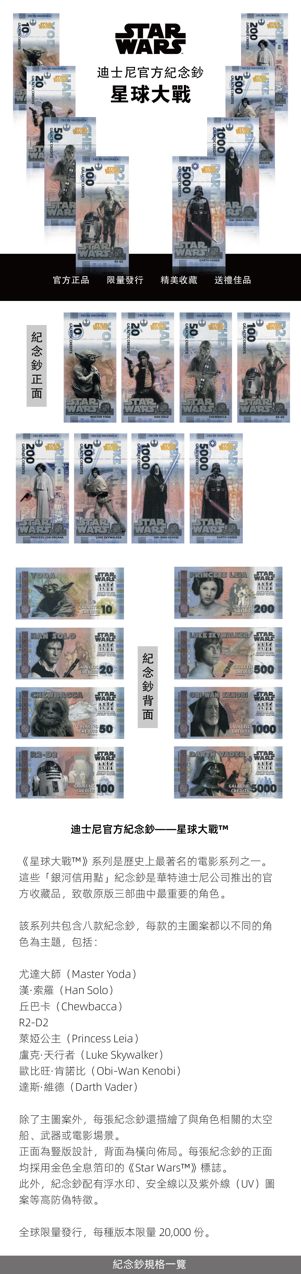 2025迪士尼官方紀念鈔【星球大戰™】系列套裝8張收藏紀念