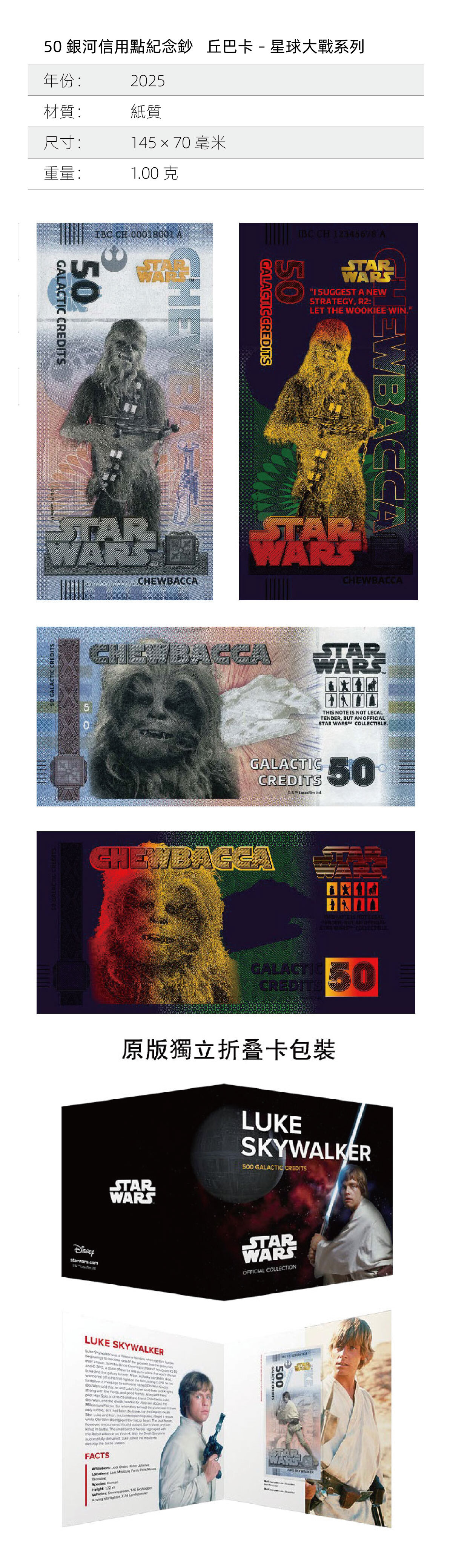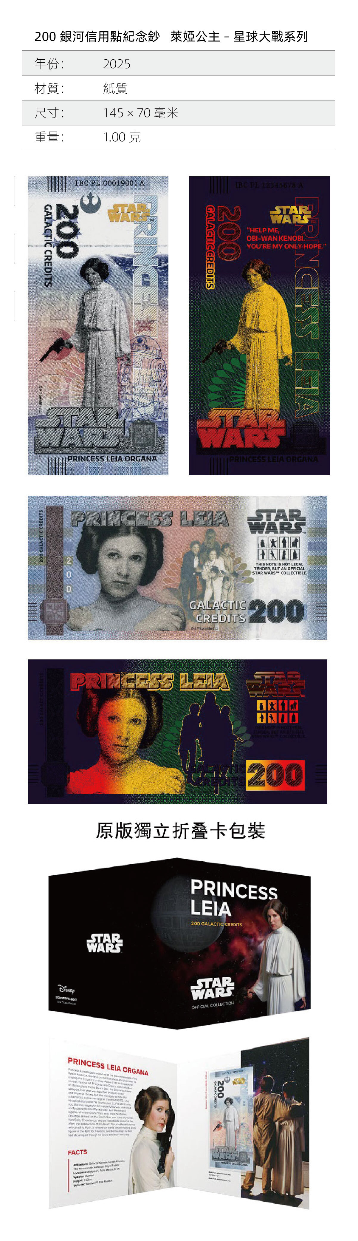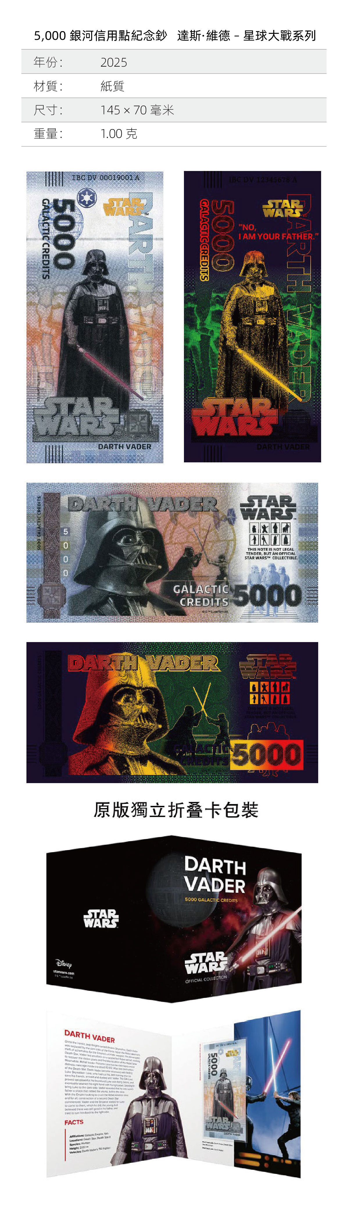 2025迪士尼官方紀念鈔【星球大戰™】系列套裝8張收藏紀念