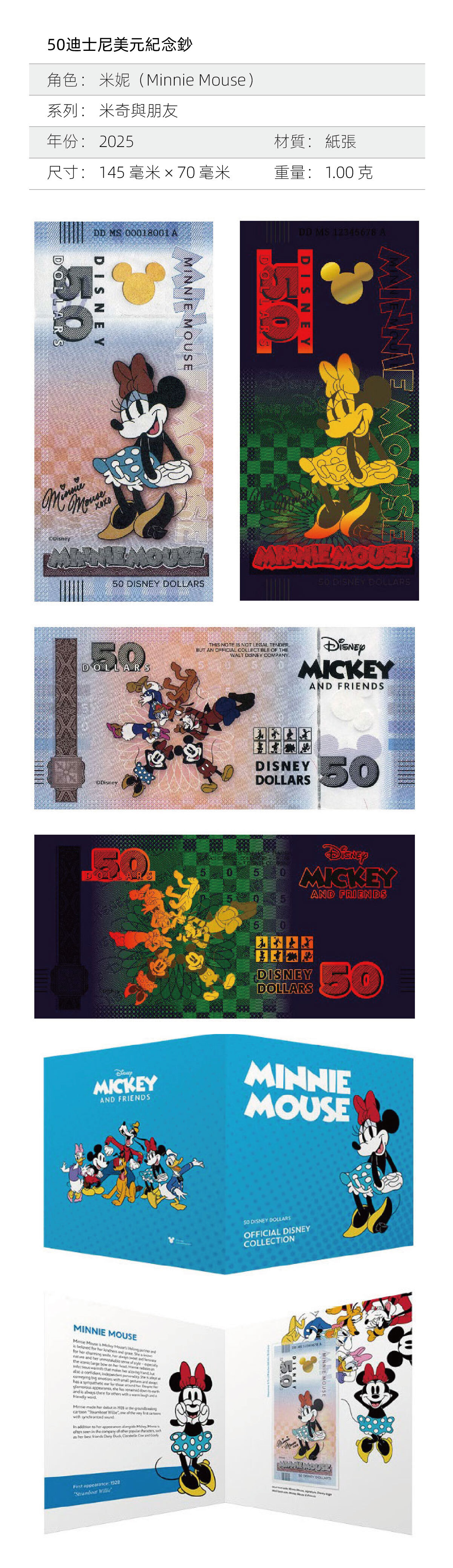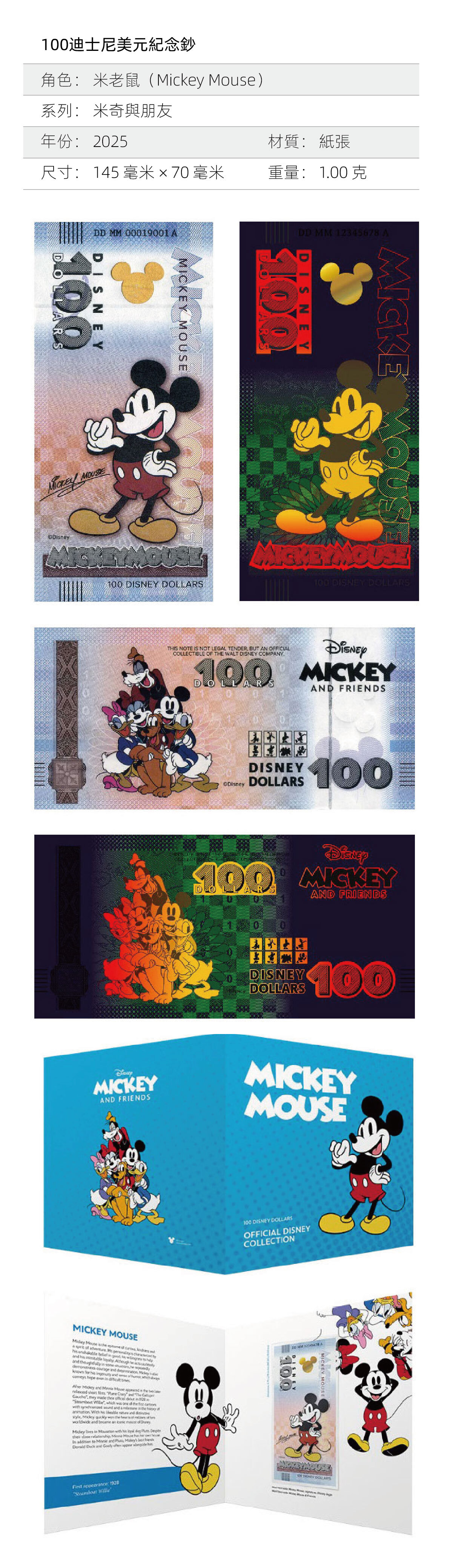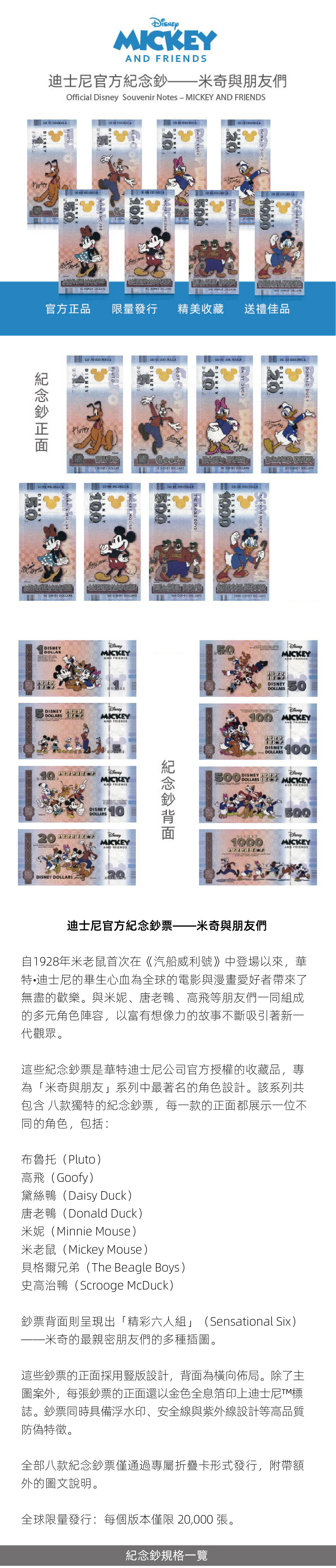 2025迪士尼主題紀念鈔【米奇與夥伴們】套裝 8張 限量發行 珍藏送禮 錢幣收藏