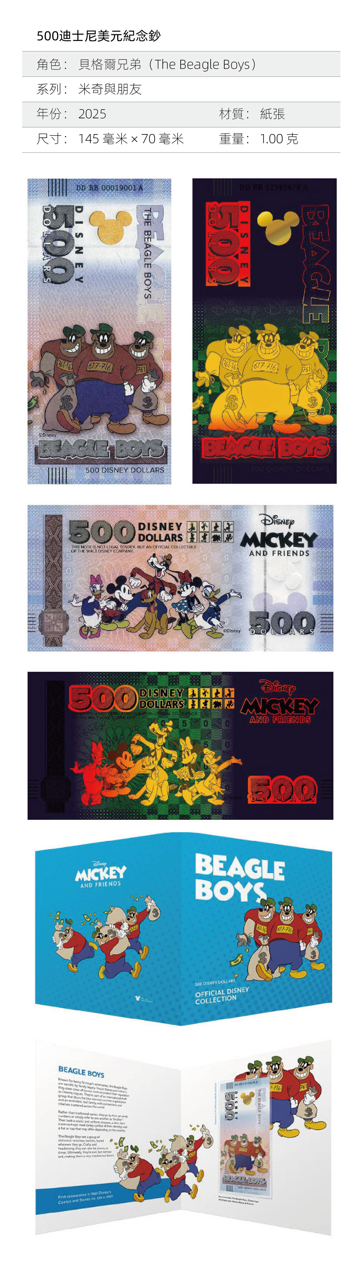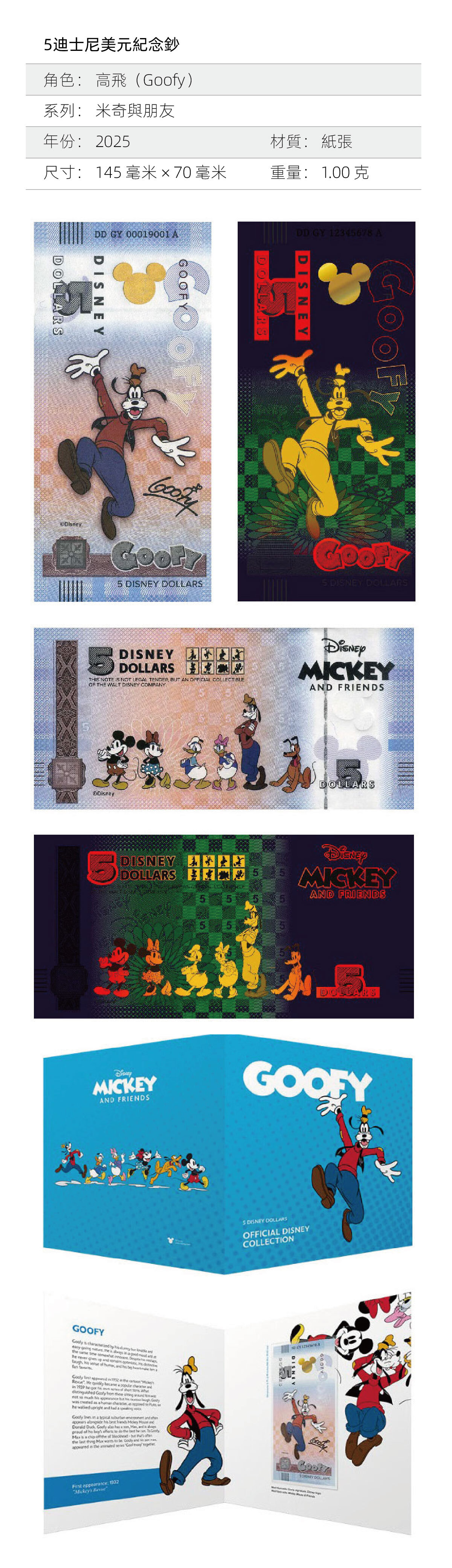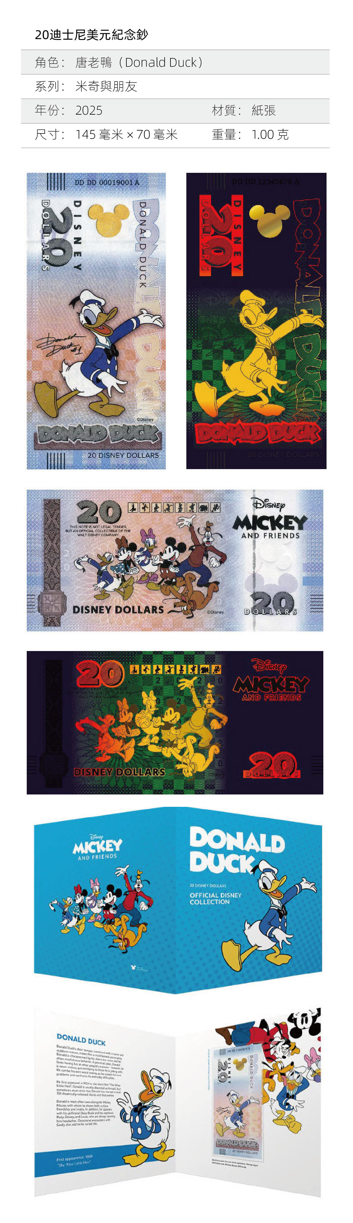 2025迪士尼主題紀念鈔【米奇與夥伴們】套裝 8張 限量發行 珍藏送禮 錢幣收藏