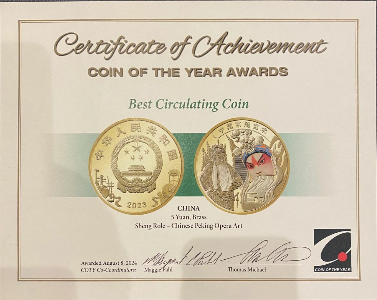 榮獲第41屆世界硬幣大獎——2023年度最佳流通幣獎